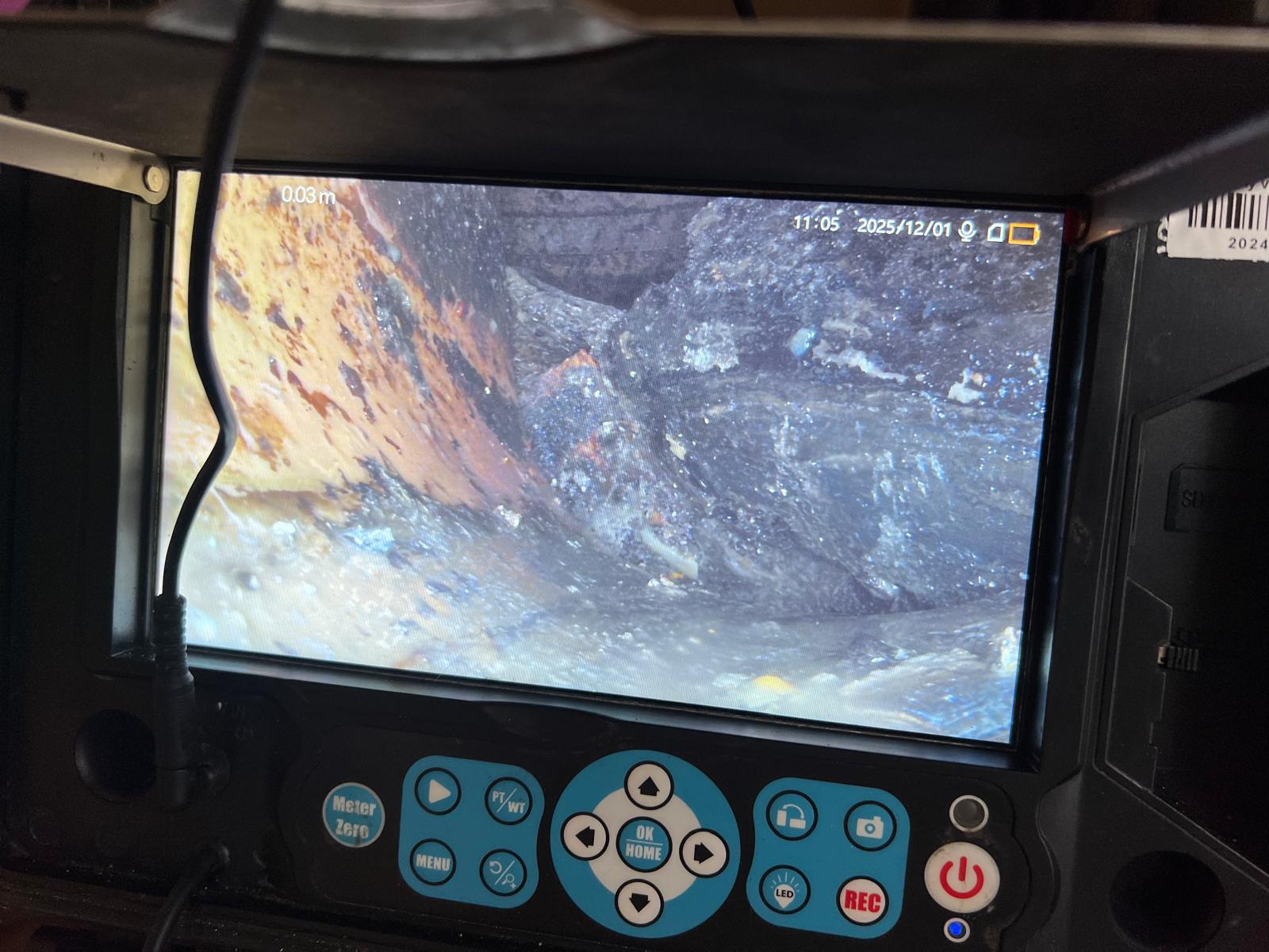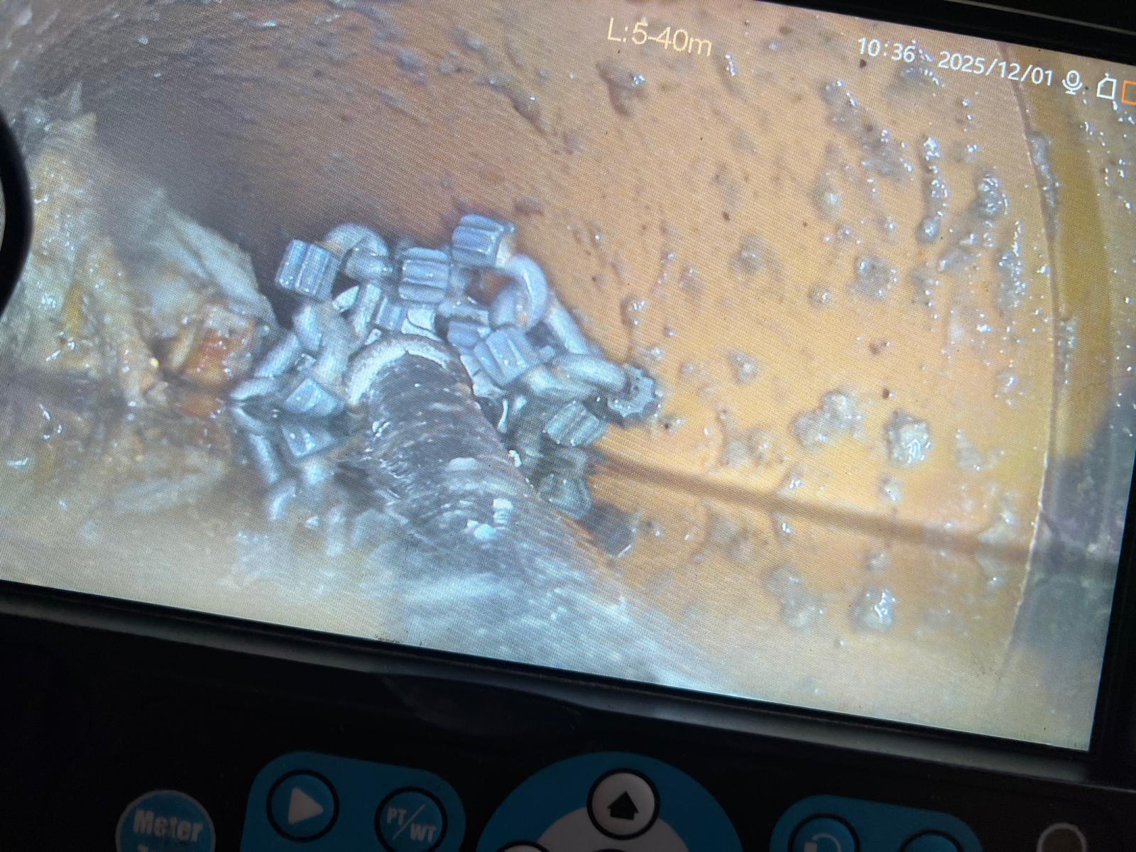 Our team traced the blockage and used a specialist drainage camera to accurately locate the obstruction. To note, we lifted the floor to gain access to the inspection chamber, allowing us to deal with the issue at its source. The stack was then jetted and cored out to remove built-up hard scale and debris that had caused the blockage.